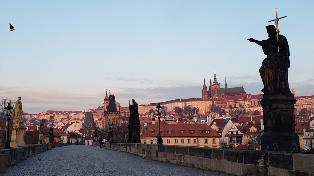 The historic center of Prague stretches along both banks of the Vltava River. It is common for visitors to divide their sightseeing over two days. The two parts of the city are connected by the famous medieval Charles Bridge, decorated with Baroque statues.